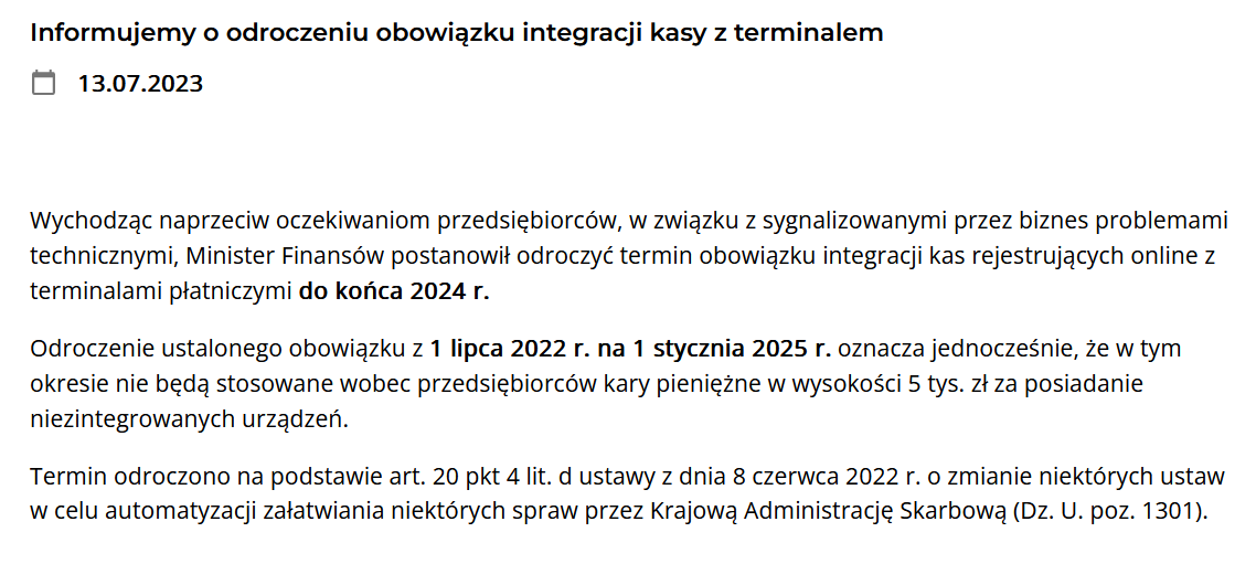 Terminale płatnicze zintegrowane z kasami fiskalnymi on line - od 01.01.2025 roku.